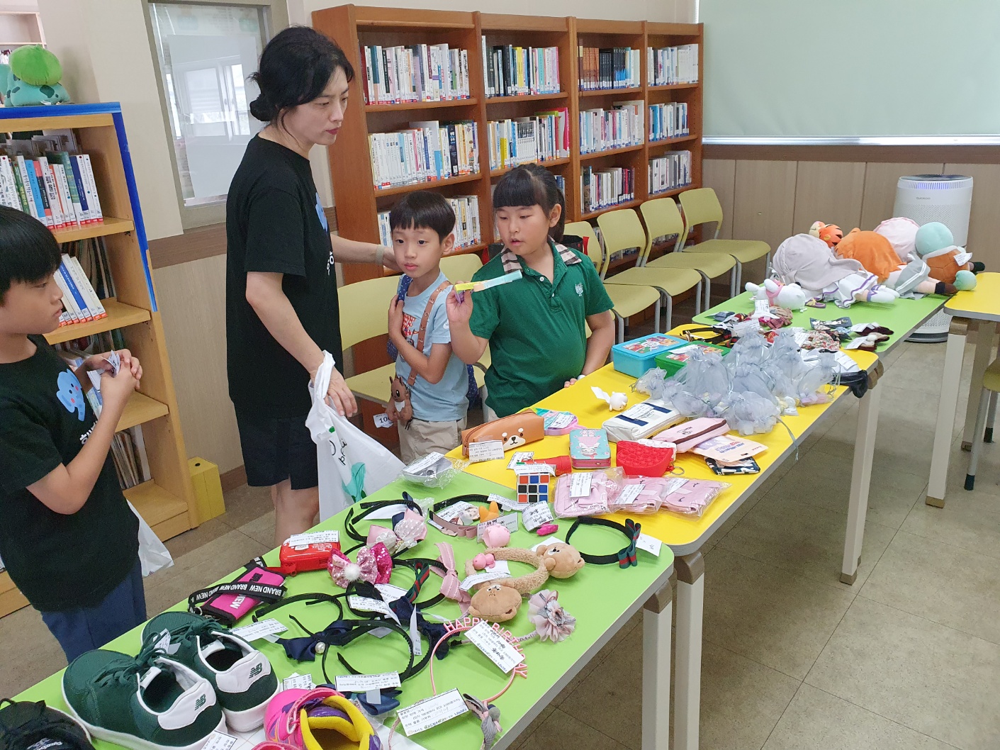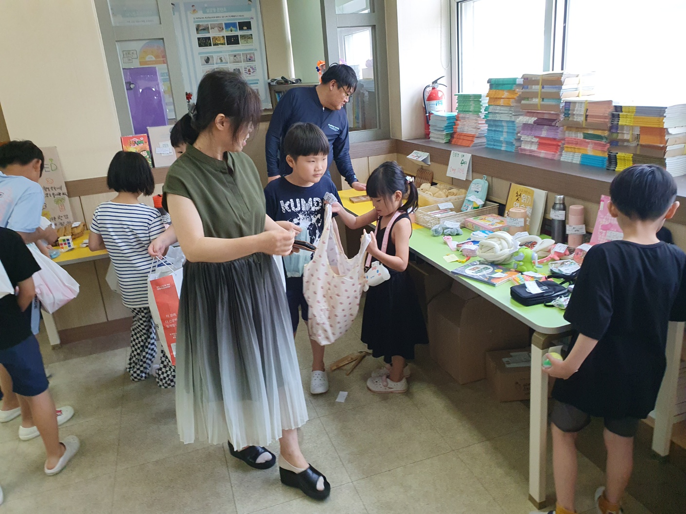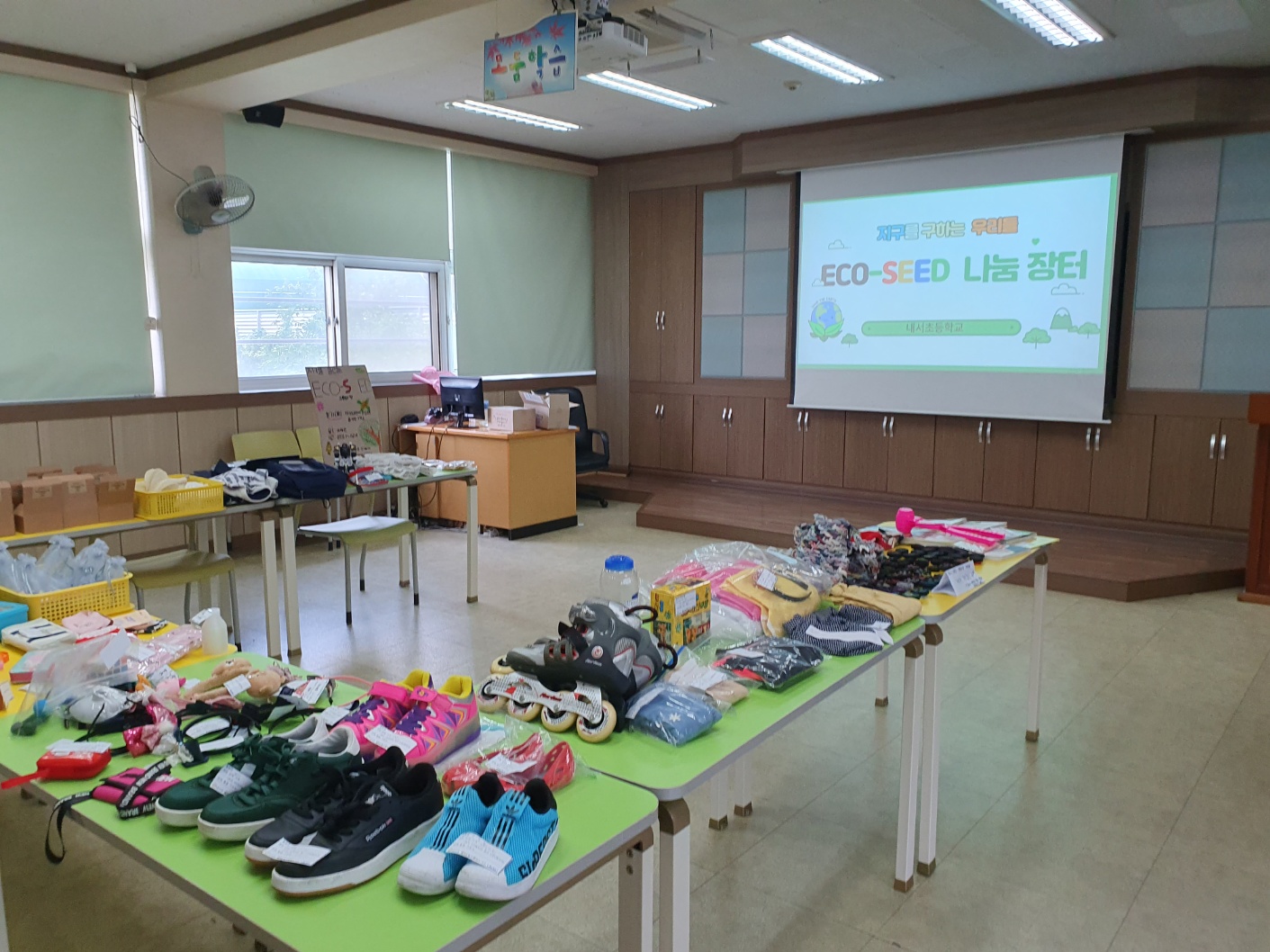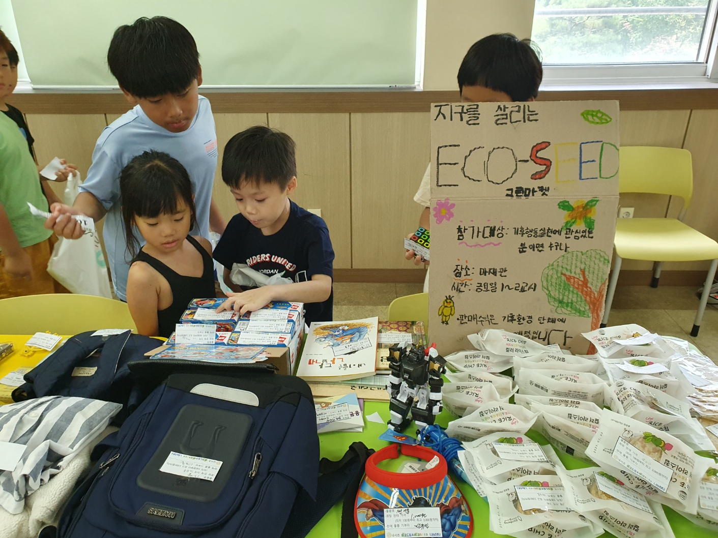 1. 일시: 2023.07.21.(금) 2. 장소: 마재관 3. 참여자: 내서초 전 교육공동체 및 전교생 4. 창원 에코드림 교육활동의 일환으로 에코씨드 나눔장터를 운영했습니다. 6학년 기후천사단 10명이 열심히 준비해 주어서 성황리에 나눔장터를 잘 마무리 했답니다.
