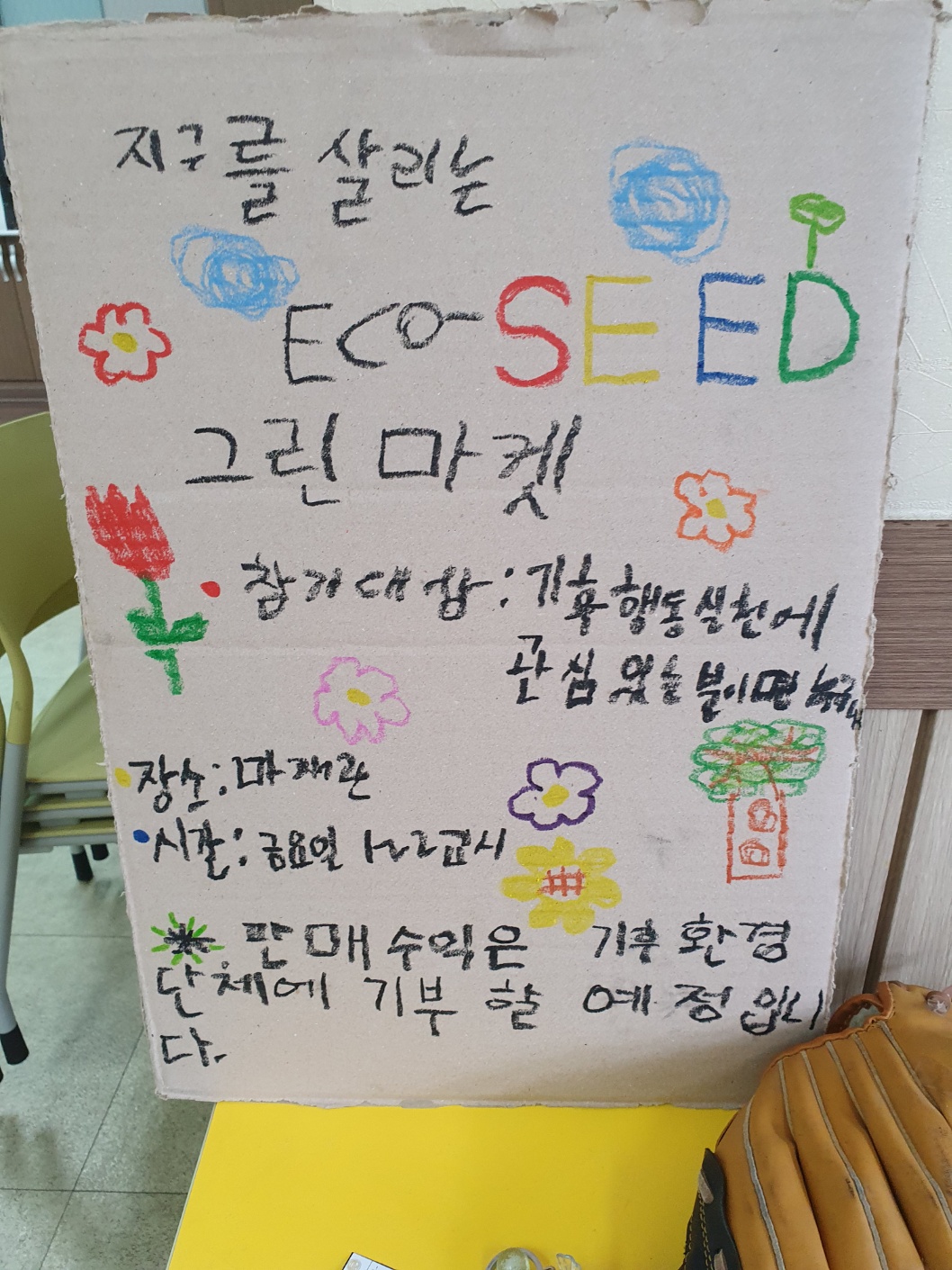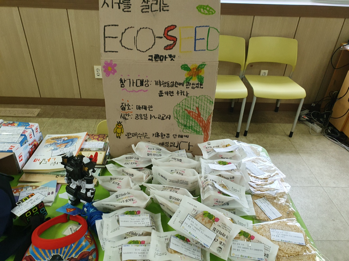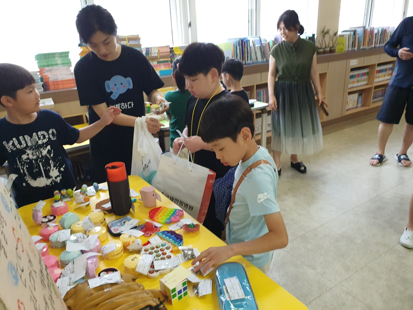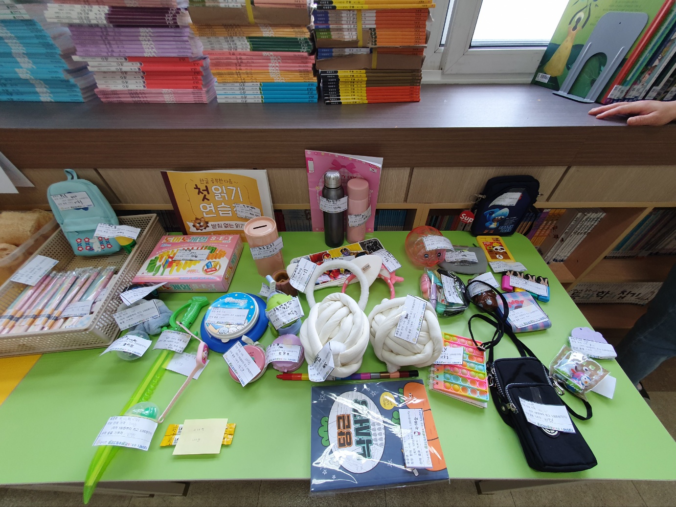1. 일시: 2023.07.21.(금) 2. 장소: 마재관 3. 참여자: 내서초 전 교육공동체 및 전교생 4. 창원 에코드림 교육활동의 일환으로 에코씨드 나눔장터를 운영했습니다. 6학년 기후천사단 10명이 열심히 준비해 주어서 성황리에 나눔장터를 잘 마무리 했답니다.