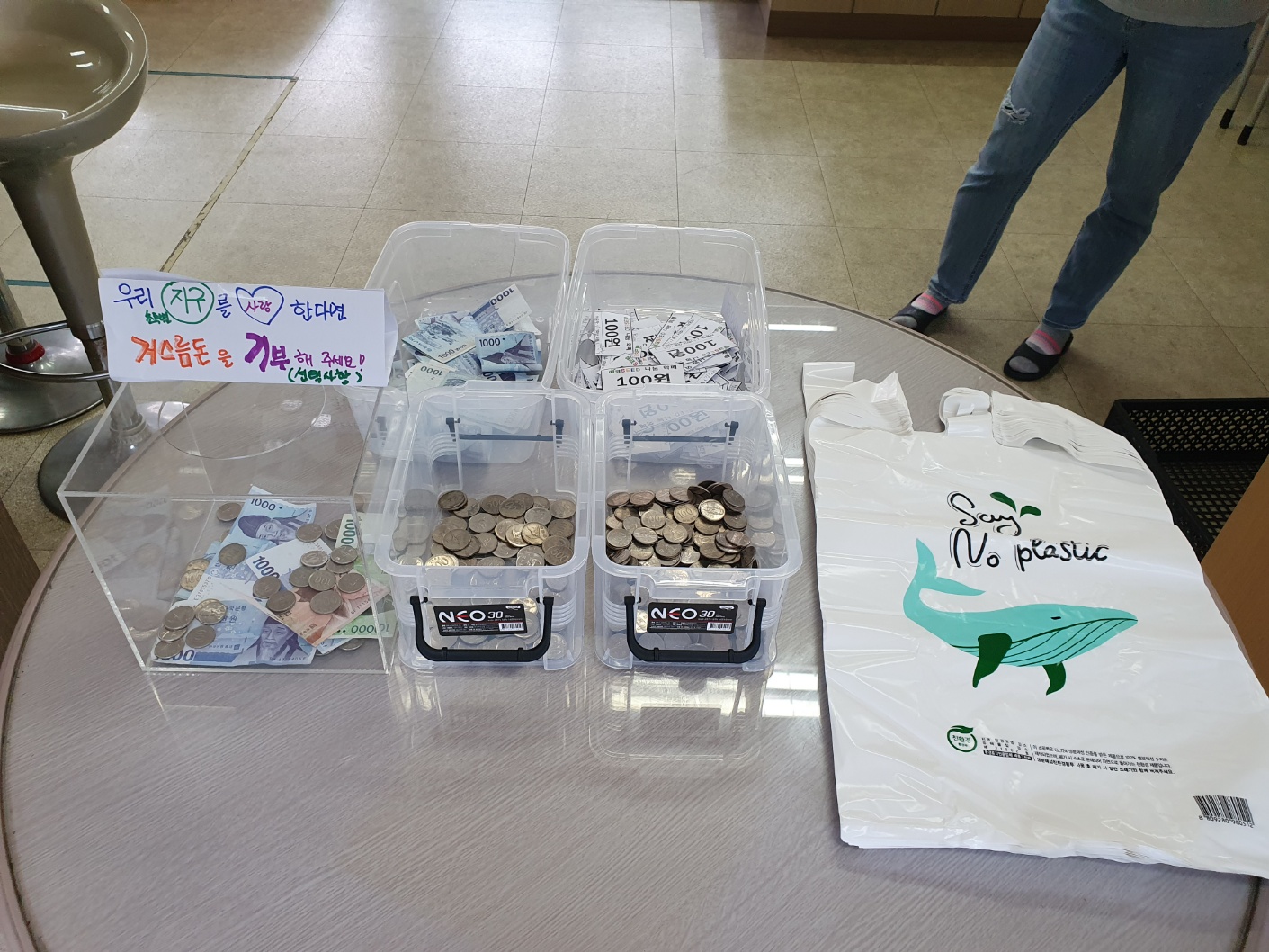 나눔장터의 총 수익금은 168,100원입니다. 이 수익금은 학생들의 투표를 통해 환경단체에 기부할 예정입니다. 나눔장터 후 남은 기부(미판매) 물품은 자산동 아름다운 가게에 기부할 예정입니다. 환경과 이웃사랑을 실천한 뜻깊은 행사였습니다.