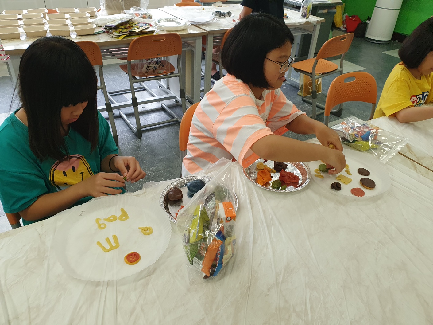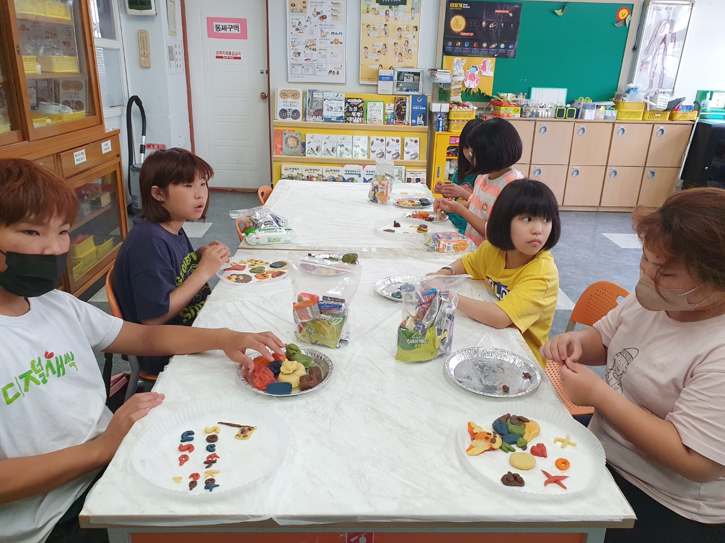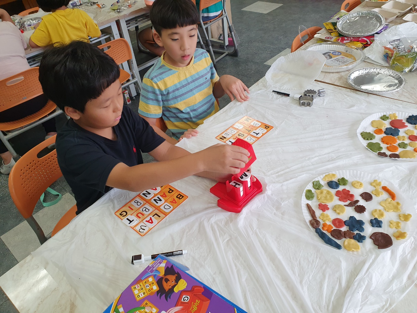1. 기간: 2023.08.16.(수) ~2023.08.18.(금) 3일간 2. 장소: 과학실 및 영어학습실 3. 참여자: 3~4학년 학생 중 희망학생 4. 활동 내용: - 알파벳 모양과 닮은 단어 송 보면서 따라 부르기 - 알파벳과 파닉스 연관지으며 챈트 릴레이로 부르기 - 알파벳 동물 모양을 동작으로 힌트 주며 해당 동물을 연상시키는 알파벳 릴레이 퀴즈로 맞추기 - 유기농 쿠키 재료로 알파벳 쿠키 만들어 굽기 - 알파벳 징고 게임(3학년), 3글자 단어 징고 게임(4학년) - 활동 소감 나누기