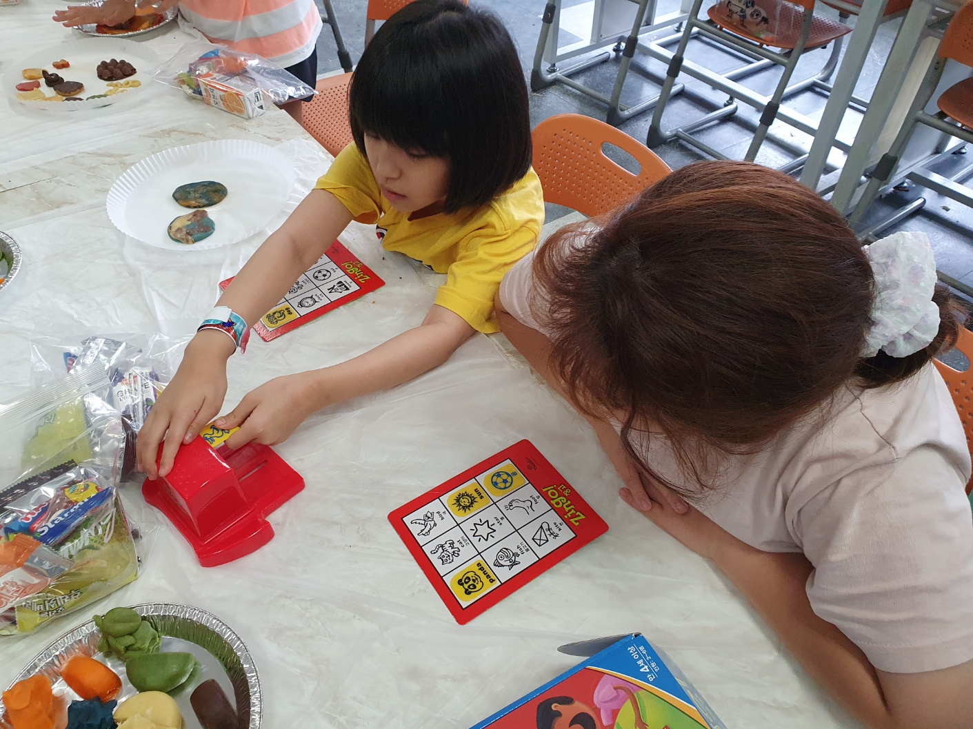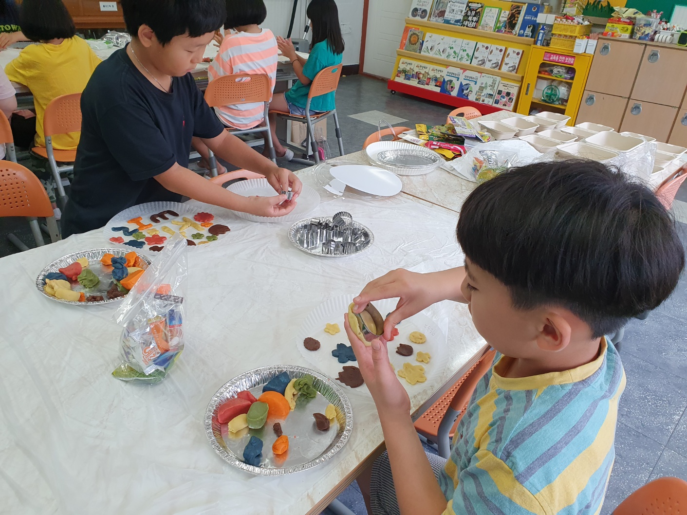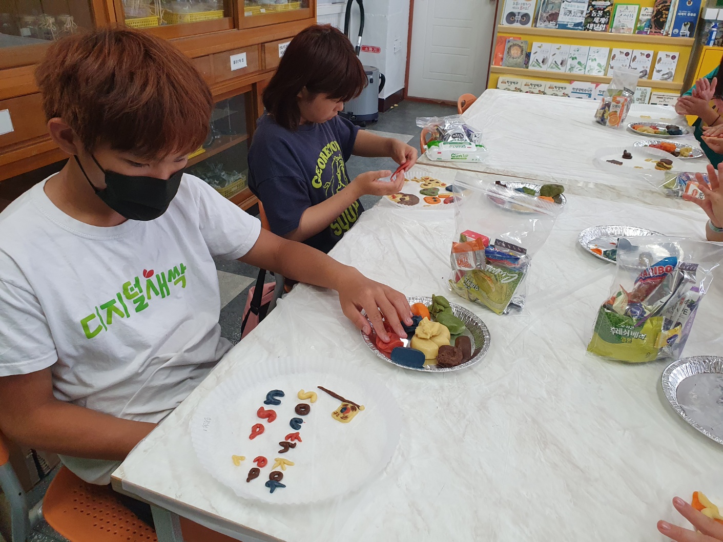 1. 기간: 2023.08.16.(수) ~2023.08.18.(금) 3일간 2. 장소: 과학실 및 영어학습실 3. 참여자: 3~4학년 학생 중 희망학생 4. 활동 내용: - 알파벳 모양과 닮은 단어 송 보면서 따라 부르기 - 알파벳과 파닉스 연관지으며 챈트 릴레이로 부르기 - 알파벳 동물 모양을 동작으로 힌트 주며 해당 동물을 연상시키는 알파벳 릴레이 퀴즈로 맞추기 - 유기농 쿠키 재료로 알파벳 쿠키 만들어 굽기 - 알파벳 징고 게임(3학년), 3글자 단어 징고 게임(4학년) - 활동 소감 나누기