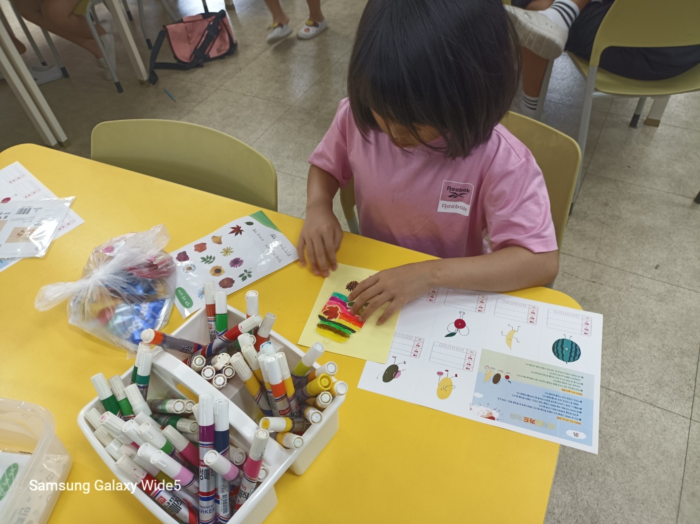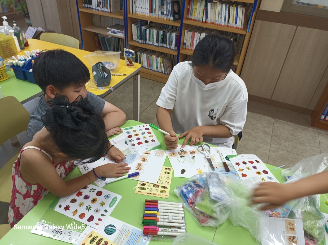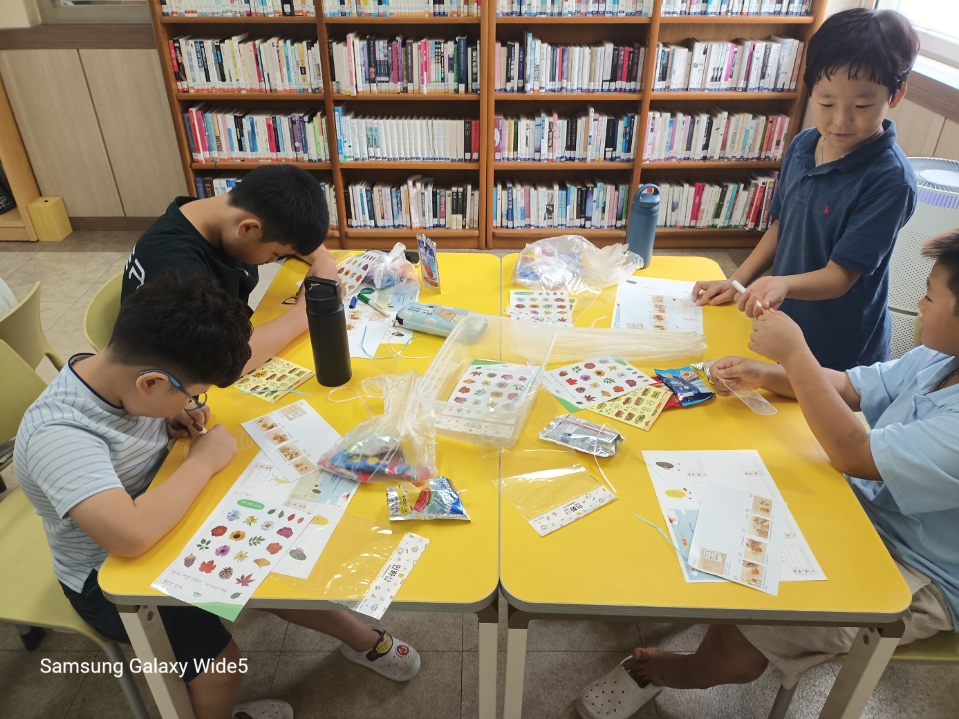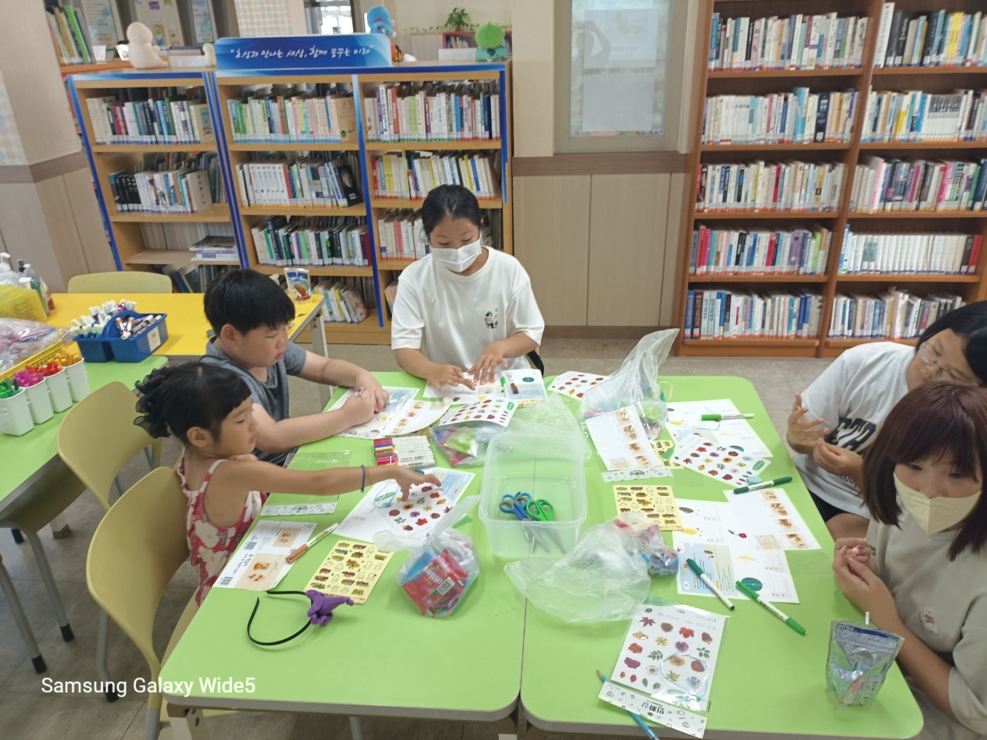 4. 활동 내용: - 아이스 브레이킹 활동 - 모둠 이름 및 구호 정하기 - 2023. 경남 독서 한마당 도서 '나에겐 비밀이 있어' 낭독하며 함께 읽기 - 그림책 읽고 소감 나누기(감동의 한줄-명언 릴레이) - 나 자신이 실망스러울 때 기운이 돋는 말 찾아 적어보기 - 마인드 업(자존감 향상 스티커) 스티커 중에서 그림책 속 주인공(아봉이)에게 해주고 싶은 말 고르기 - 마인드 업 압화(꽃) 책갈피 2개씩 만들기, 책갈피 만들고 마인드 업 스티커 붙여서 꾸미기 - 활동 소감 나누기