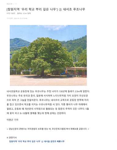 우리 학교 뿌리 깊은 나무 - 푸조나무(교목) 기사 내용